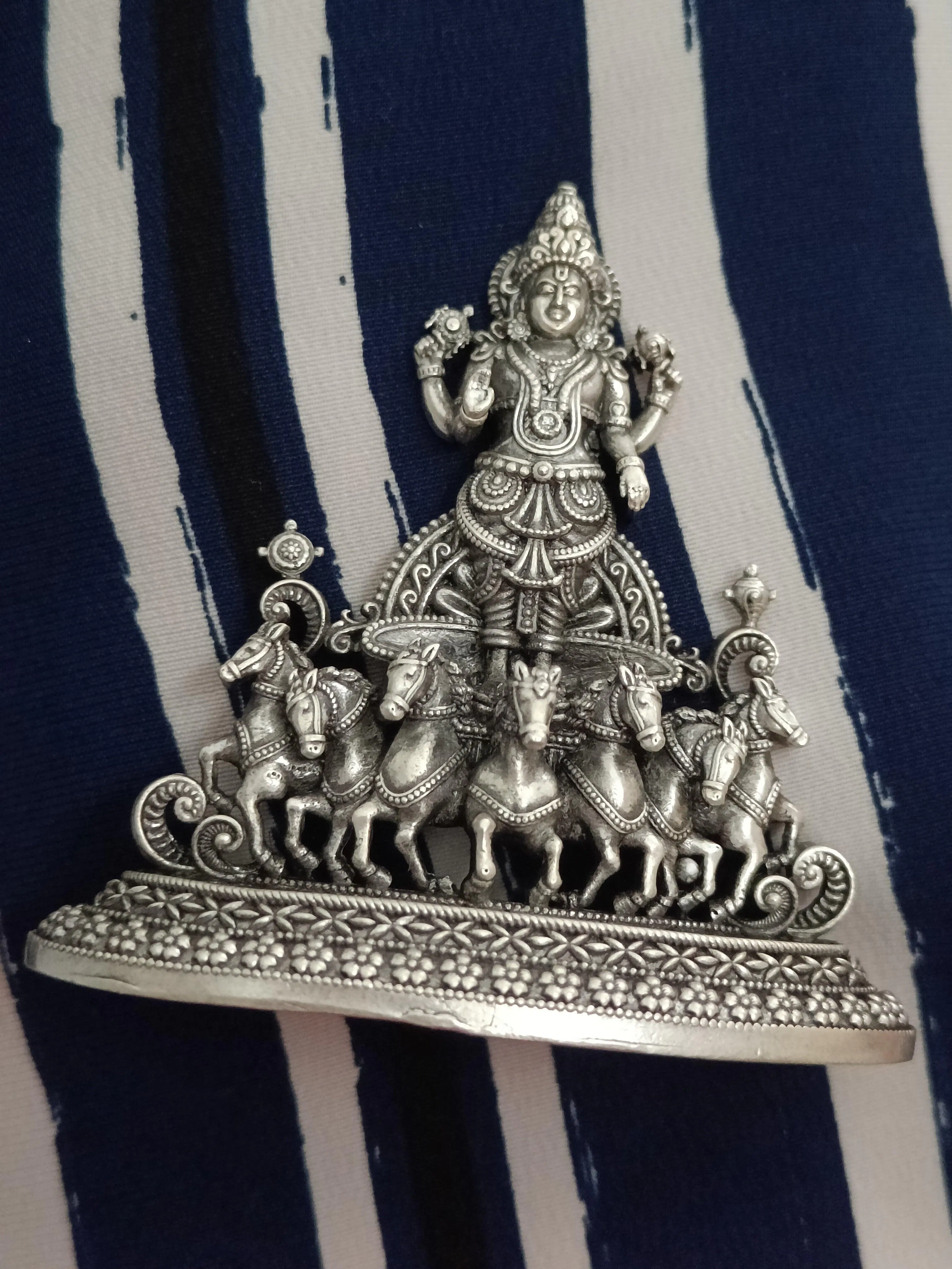 Pure Silver Surya Narayan Idol: 7 Horse Edition