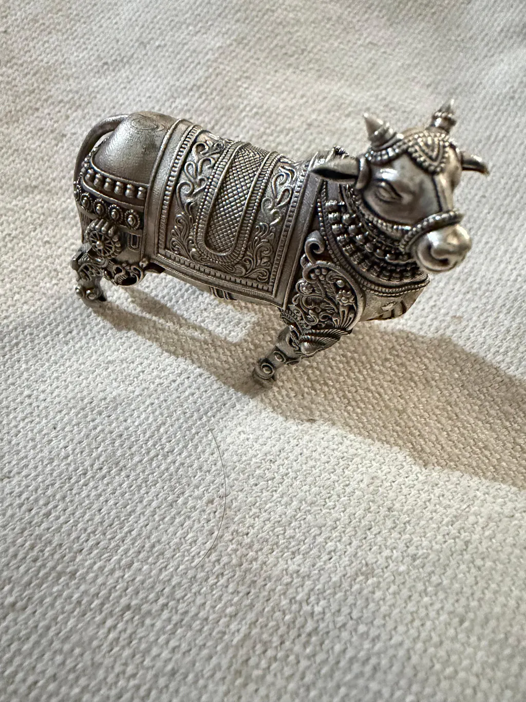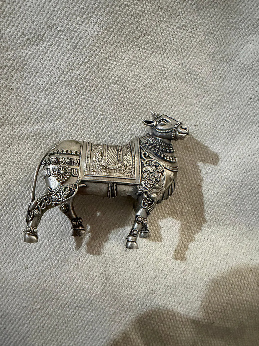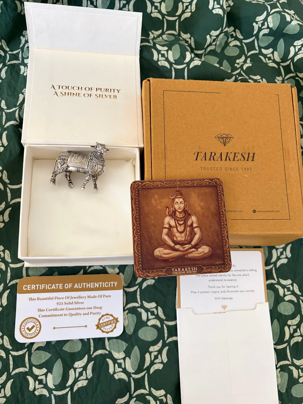 The Cow Pure Silver Idol: Kamdhenu Edition is a sacred symbol of abundance, purity, and divine nourishment, inspired by the celestial cow Kamdhenu from Hindu tradition. Crafted in pure silver with graceful detailing, this idol embodies prosperity and spiritual fulfilment. In TARAKESH, we have designed the Kamdhenu Edition to honour the divine blessings of Kamdhenu, bringing positivity, wealth, and harmony into every space it adorns.
