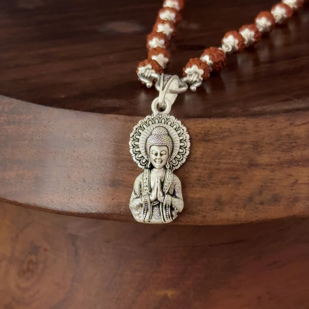 - Pendant with 54 Authentic Rudraksha 6mm Beads Silver Chain