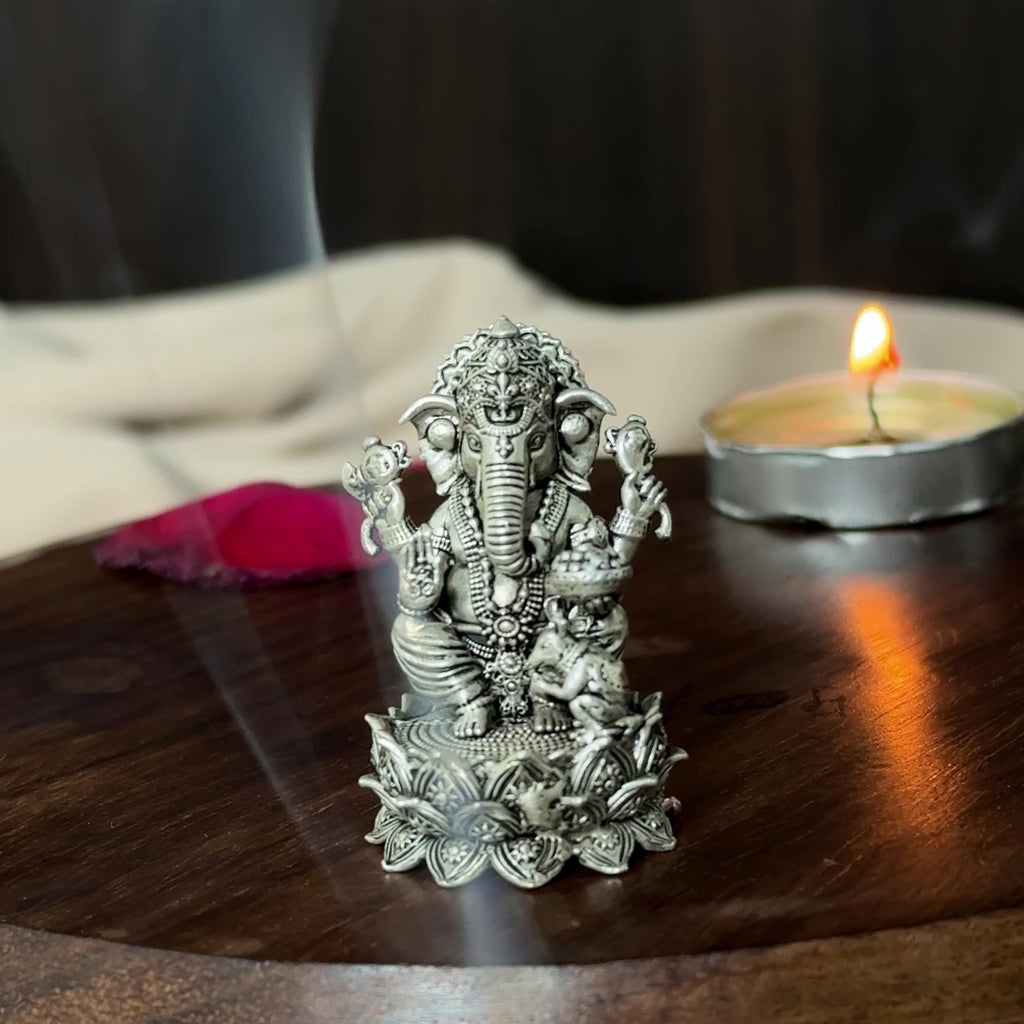 The Ganesha Pure Silver Idol: Vinayaka Edition is a divine representation of Lord Ganesha, the remover of obstacles and harbinger of wisdom, prosperity, and new beginnings. Crafted from pure 92.5 silver, this edition radiates auspiciousness, serenity, and sacred brilliance. At TARAKESH we have designed this edition to celebrate Vinayaka, the benevolent form of Ganesha who blesses devotees with clarity, courage, and success. This idol serves as a perfect spiritual centrepiece, inviting harmony, fortune, and divine grace into every home.