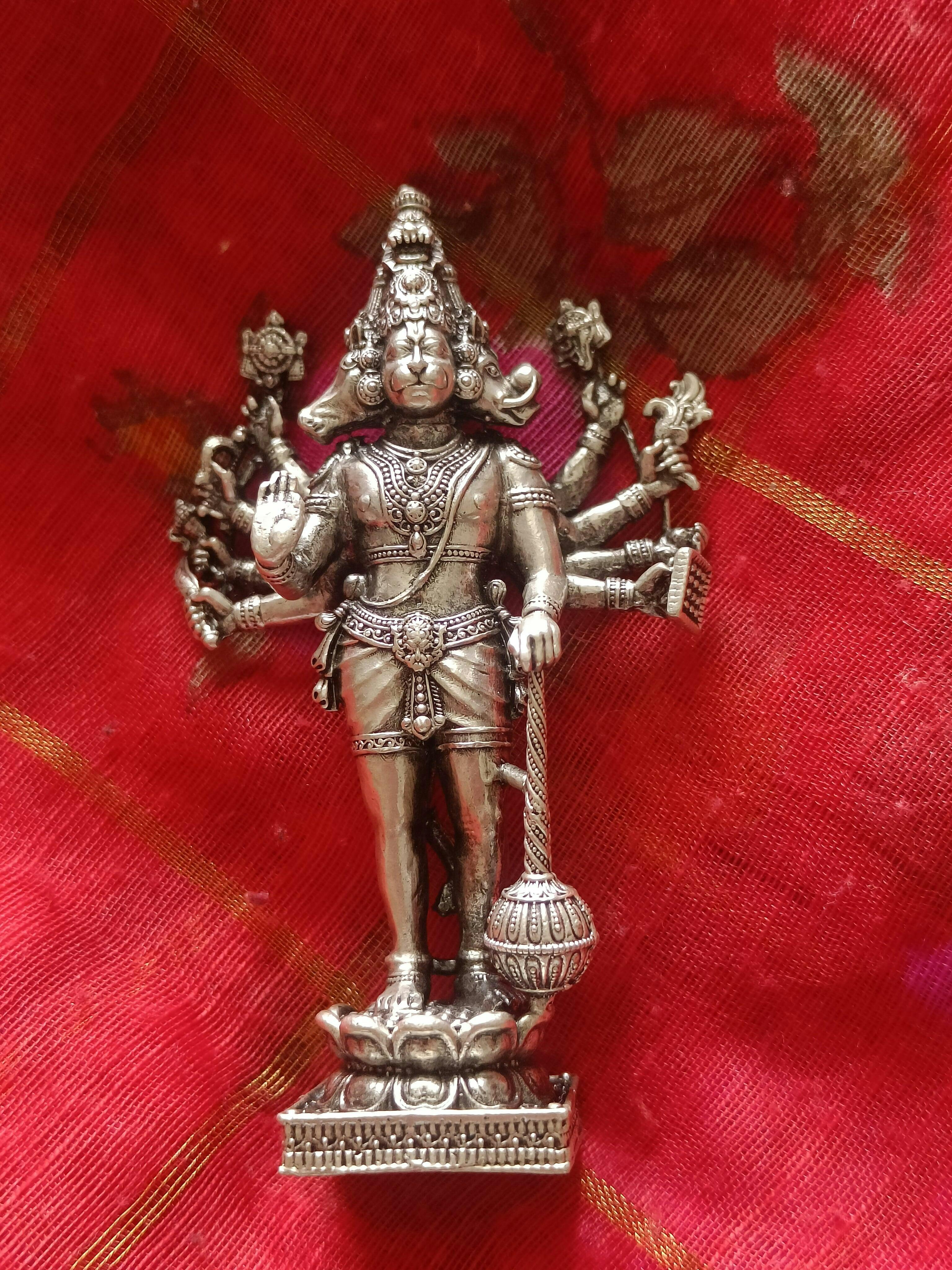 Hanuman Pure Silver Idol: Panch Mukhi Edition