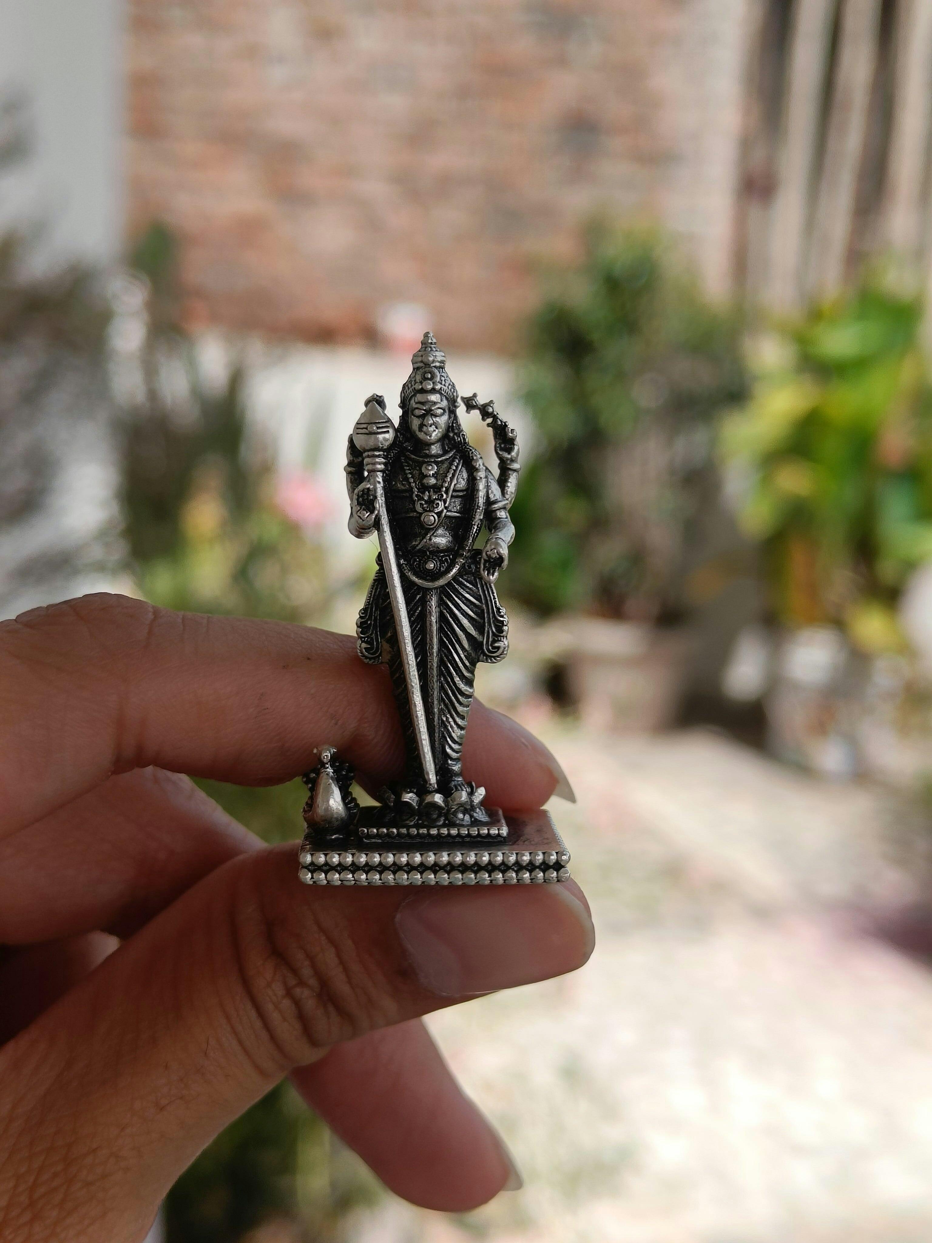 Design Essence: Depicts Lord Murugan in his divine form, holding the Vel (spear) symbolising knowledge and victory.