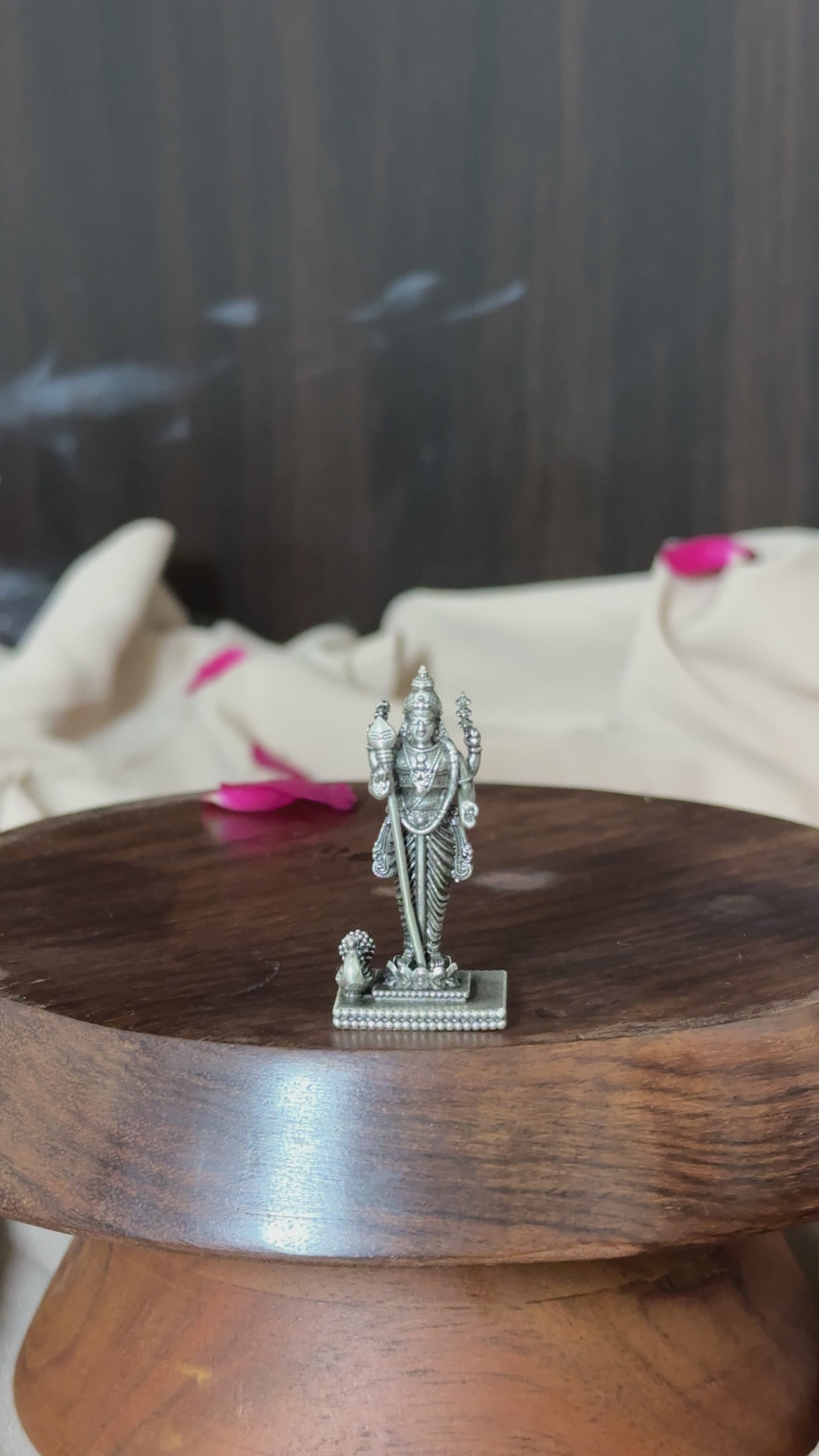 The Murugan Pure Silver Idol: Subrahmanya Edition is a divine representation of Lord Murugan, the god of valor, wisdom, and victory. Crafted from pure 92.5 silver, this edition radiates youthful energy, courage, and divine brilliance. At TARAKESH we have designed this edition to honour Subrahmanya, the noble warrior son of Lord Shiva and Goddess Parvati, revered for bestowing strength, knowledge, and protection upon devotees. This idol embodies purity of purpose, spiritual growth, and triumph over darkness.