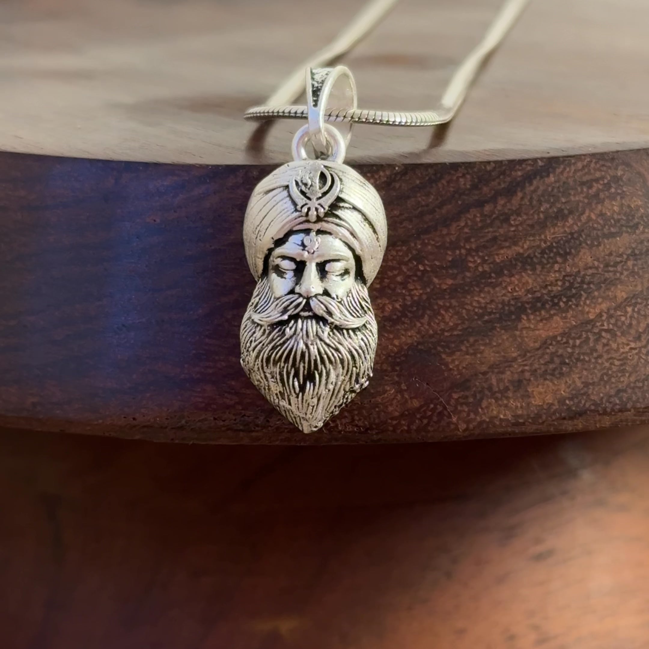 Pure Silver Guru Nanak Pendant: Waheguru Edition